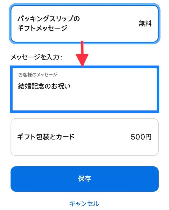 2021年6月に確認したところ、「ギフトメッセージ」のみの表記に変わっていました。