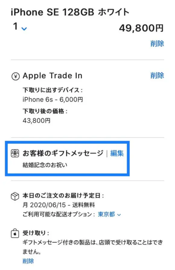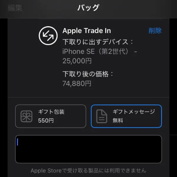 Apple Storeでパッキングリストのギフトメッセージを入力