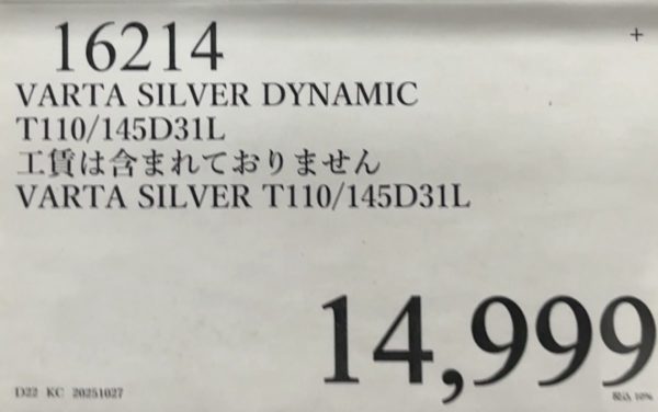 VARTAのバッテリーには3つのグレードがありますが、コストコで取り扱っているのは、最高峰の「Silver Dynamic」