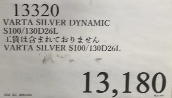 | VARTA SILVER DYNAMIC | 現価格 | 旧価格 | 旧通常価格 | キャンペーン価格 | 割引額 |
