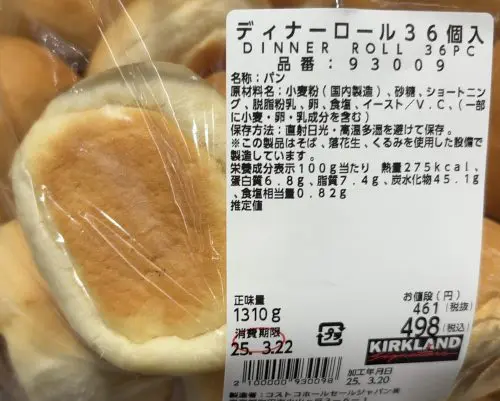 コストコのディナーロール1個あたりのカロリーと値段が知りたいな…