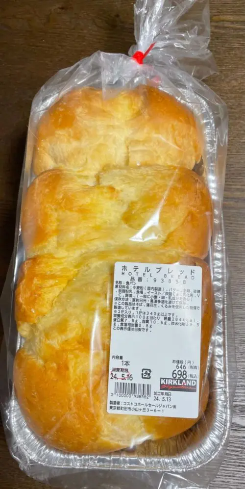 国産ミルクブレッドは水の代わりに国産牛乳を使っていてフワフワもちもちでしたが、ホテルブレッドはトースターでこんがり焼くとカリっとした食感が楽しめます。