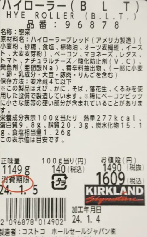 コストコ ハイローラーのカロリーと値段の詳細