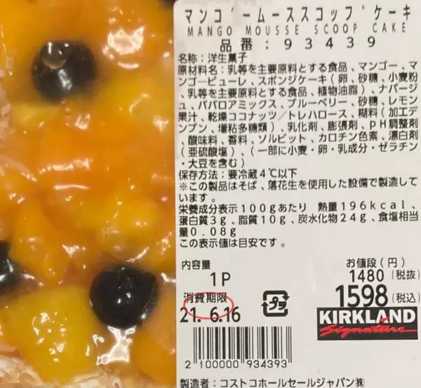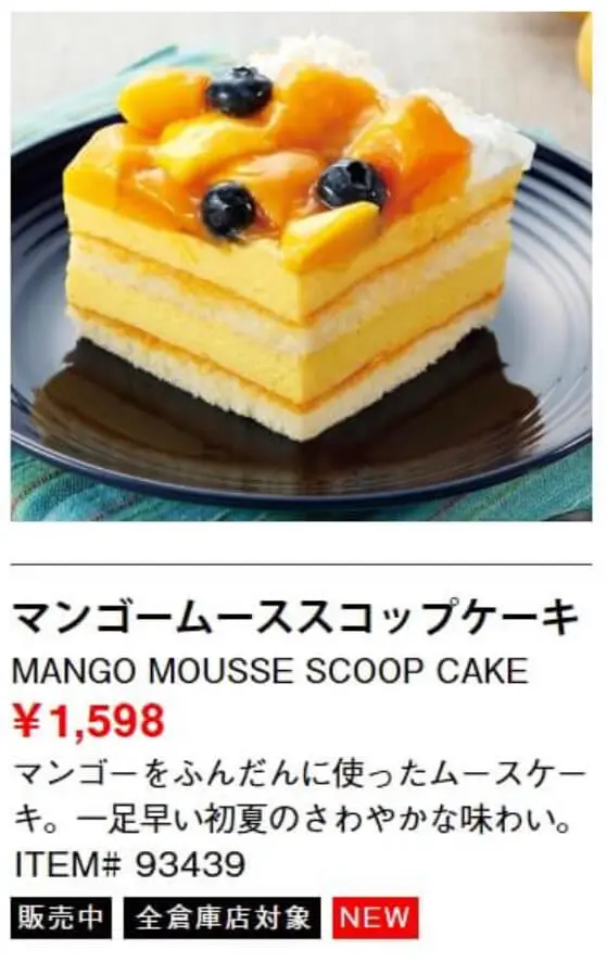 コストコマンゴームーススコップケーキの詳細