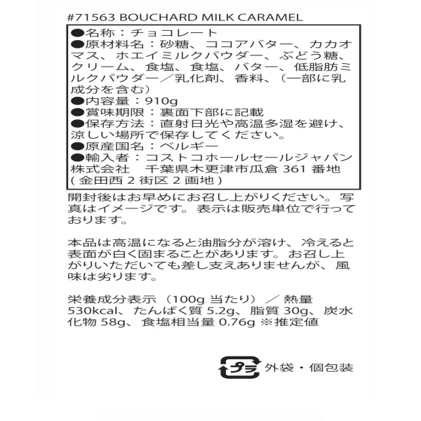 コストコの小袋、大容量チョコレートである「ブシャール ベルギーチョコレート ミルクキャラメル シーソルト」の1袋の容量とカロリーを徹底解剖します!