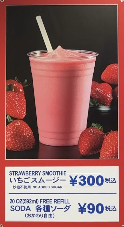 そんなコストコスムージーは、 レジを通った後にあるフードコートで購入する事が出来ますが、数ヶ月程のサイクルで入れ替わります。
