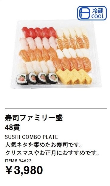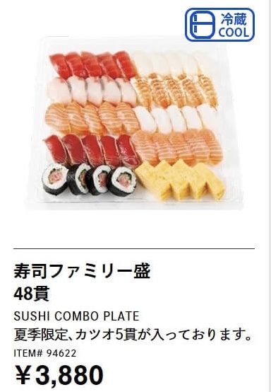 コストコ 特選ファミリー盛50貫とお寿司ファミリー盛48貫の詳細