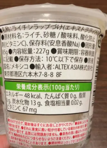 2021年9月Vita+ライチ1,998円108.96kcal166.5円