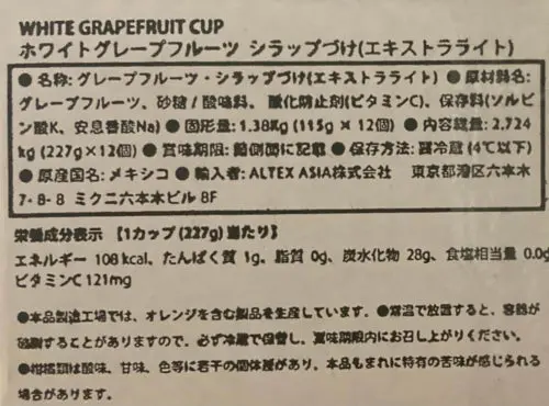 コストコ Vita+ホワイトグレープフルーツの詳細