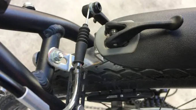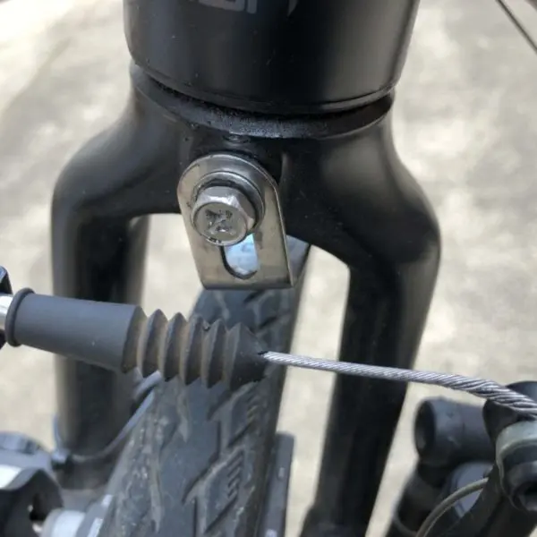 元々開いている自転車のダボ穴に、付属の金具を取り付けてからフェンダーを差し込んでロックするタイプです。