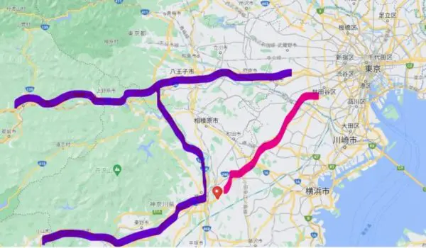 なぜかって、中央自動車道や圏央道があるため、名古屋に行くにも大阪に行くにも海老名JC(ジャンクション)から都会方面の海老名SA(サービスエリア)を通るには厄介なのであります。