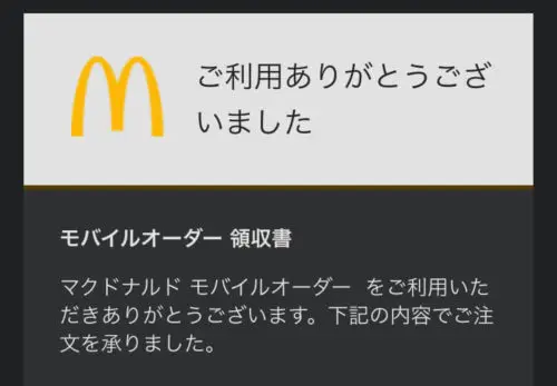 購入後スグに、モバイルオーダーの領収書が届きます。