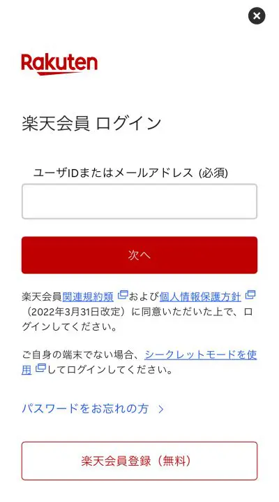 今回は楽天Payでの決済を選択したので楽天会員に変移した後ログインします。