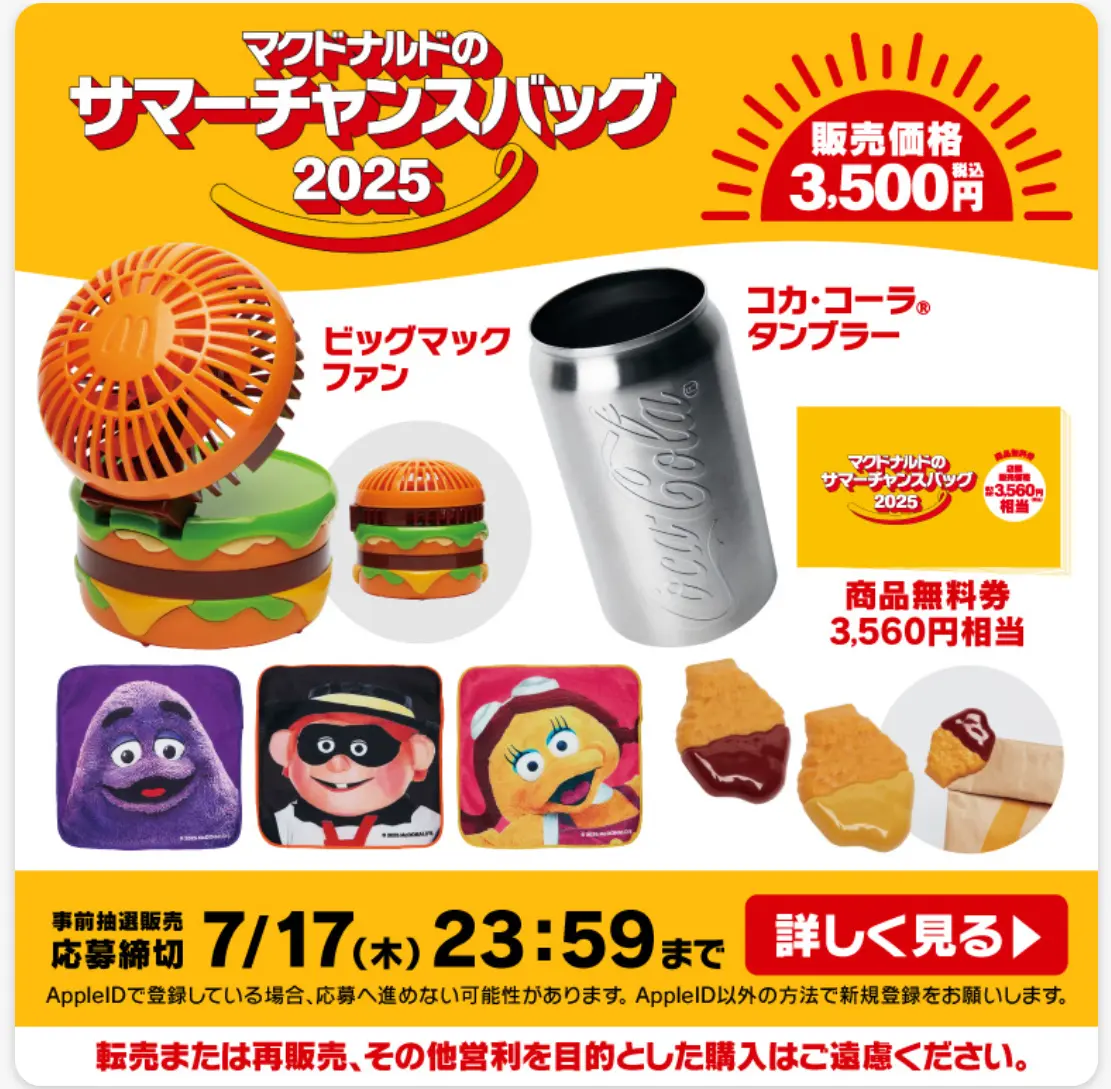 お正月恒例だったマクドナルドの福袋が遂に夏にもやってきます!