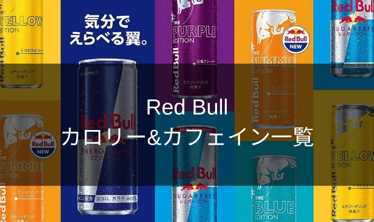 ここではレッドブル各フレーバー1缶250mLのカロリーとカフェインを一覧で紹介します!