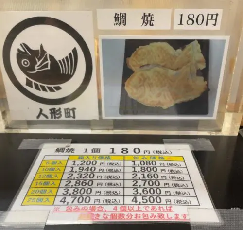 近くにあるチェーン店の鳴門鯛焼本舗に比べてもお安い料金設定になっています。